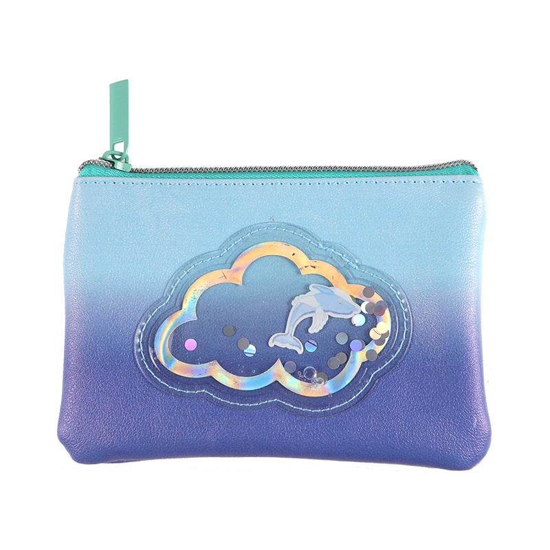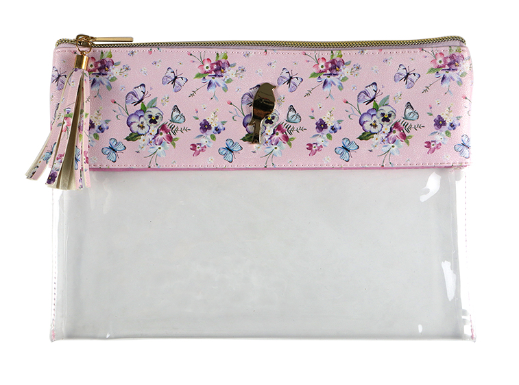1. pencil case, 25.1cm*18.3cm*0.8cm; material, PU with printing+PVC; gold zipper with PU tassel puller.