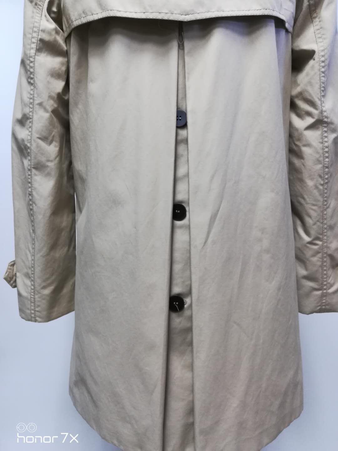 ----A big pleat at center back with plastic button