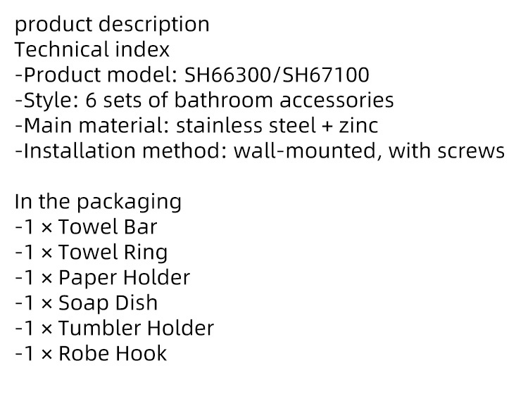 SunFire SH66300/67100 Bathroom Hardware Set 6 Piece Zinc