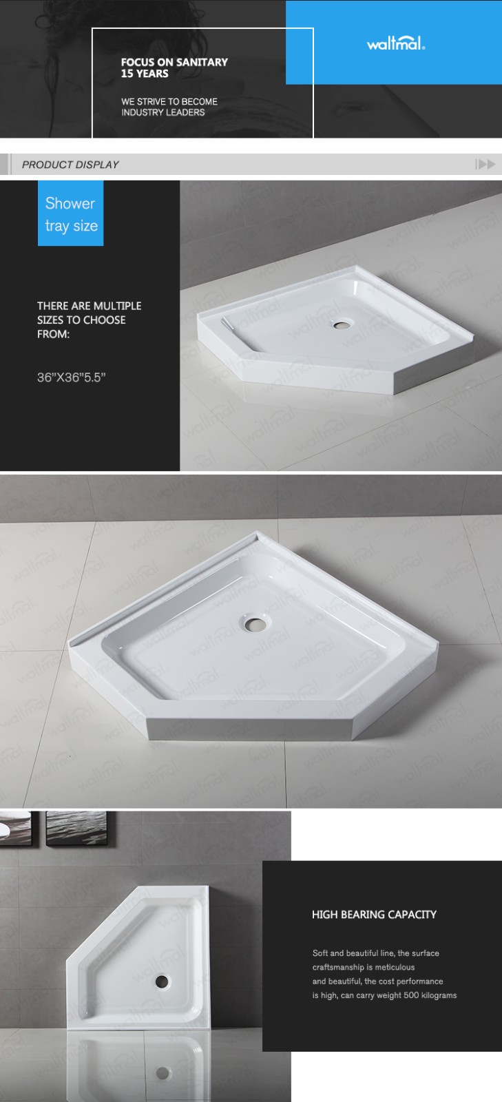Waltmal Cupc Acrylic Resin Fiberglass Freestanding Tray Cheap Custom Acrylic Shower Base WTM-013636NEO