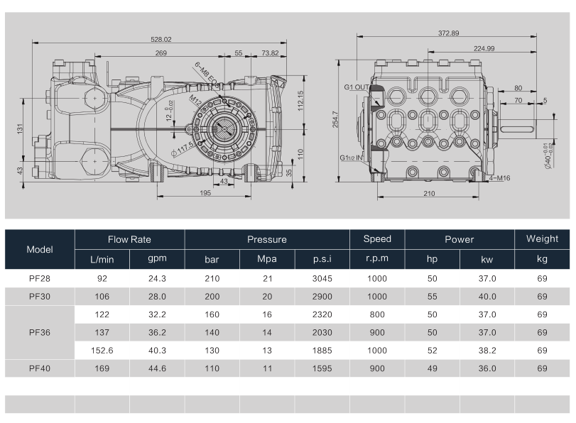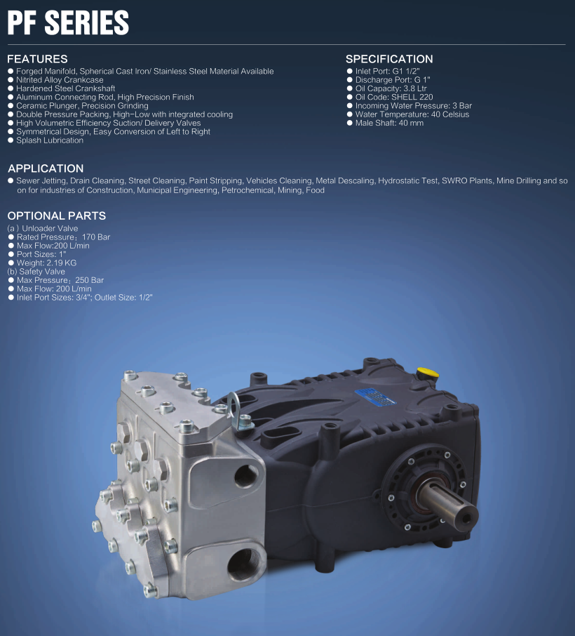 PF40 169Lpm Industrial High Pressure Sewer Jetting Triplex Plunger Pump For Car Wash