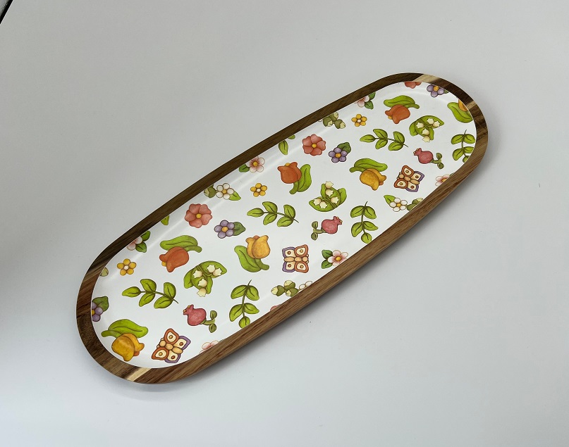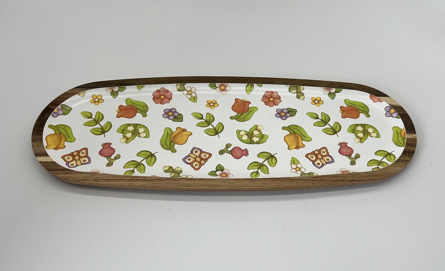 ACACIA WOOD TRAY WITH DESIGN 44X16.3X1.8CM-MATERIAL: ACACIA WOOD-SIZE: 44X16.3X1.8CM-PACKING: STICKER-CARTON SIZE : 37*18*26 CM /12 PCS / GW:6.8 KGS